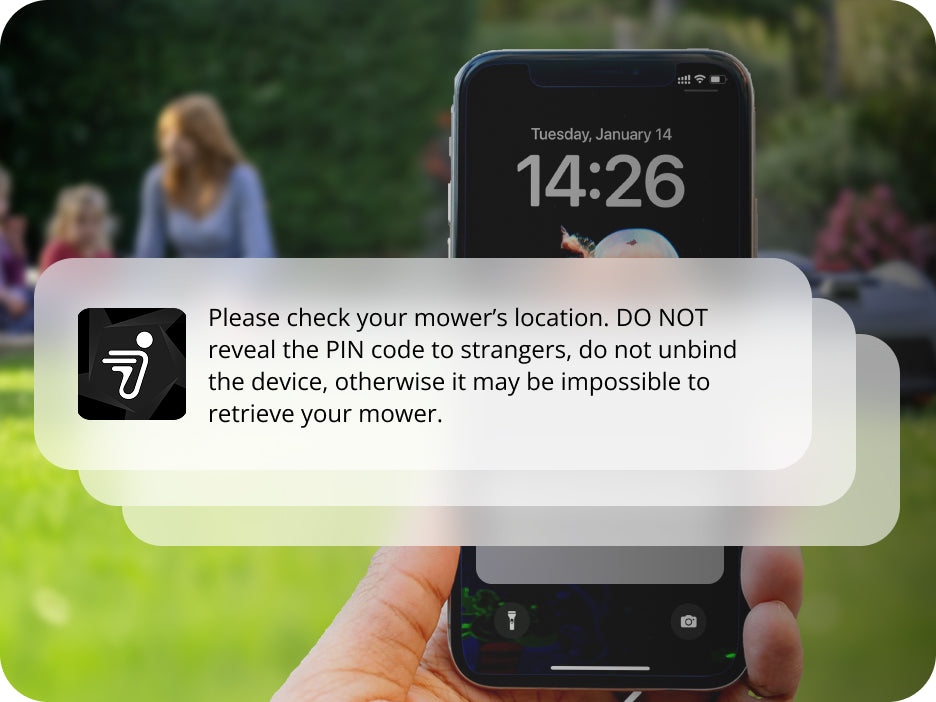 Con un semplice tocco nell'app, puoi facilmente attivare il blocco di sicurezza per disabilitare il pulsante di avvio fisico del tosaerba, migliorando notevolmente la sicurezza. Questa funzione innovativa offre un ulteriore livello di protezione, garantendo che la cura del prato rimanga sicura e protetta, specialmente nelle famiglie con bambini.