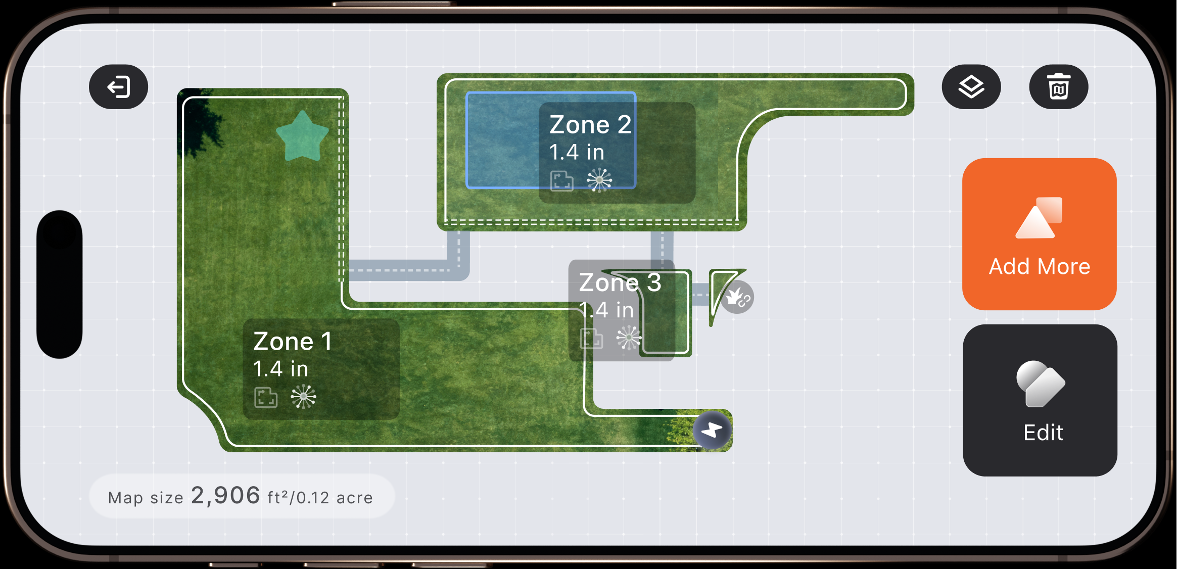 Genera mappe in vista reale nell’app. Modifica visivamente i confini, regola i bordi e ottimizza il tuo piano di falciatura con comandi intuitivi, punta e tocca.